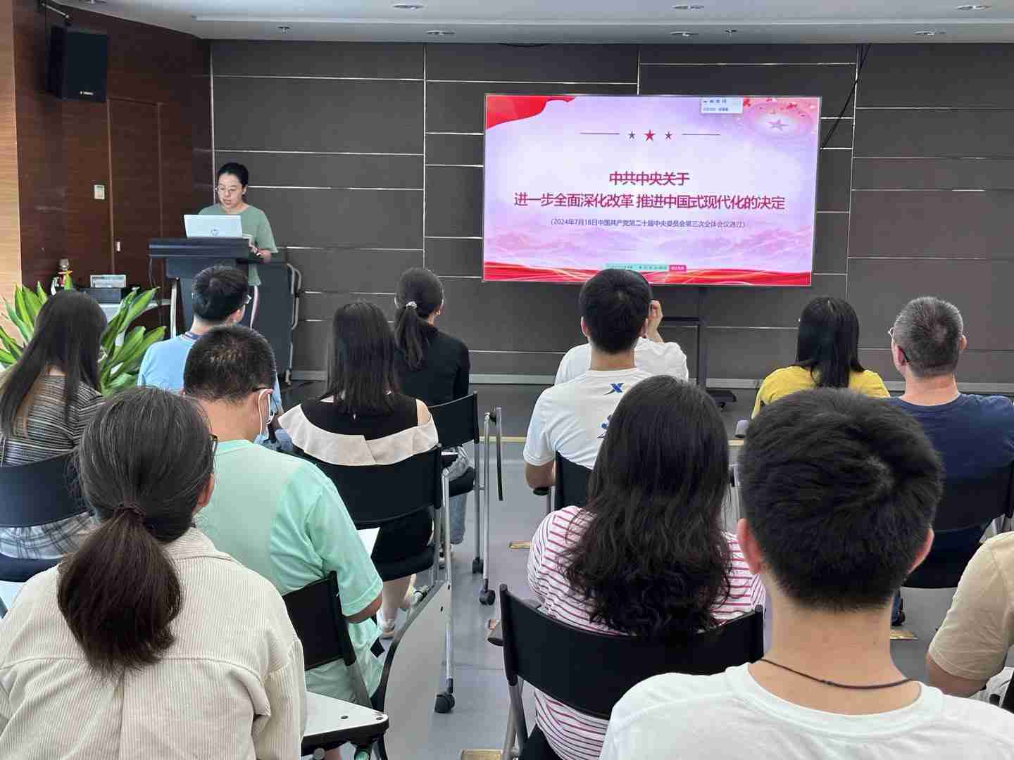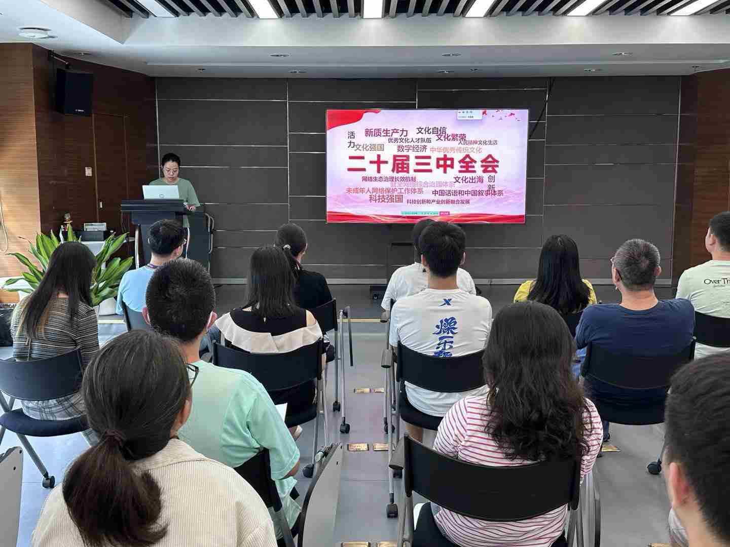与会人员深入学习《决定》内容。。党的二十届三中全会提出必须增强文化自信,,,发展社会主义先进文化,,弘扬革命文化,,传承中华优秀传统文化,,加快适应信息技术迅猛发展新形势,,构建更有效力的国际传播体系,,这为广大文化产业工作者指明了奋斗方向。。。