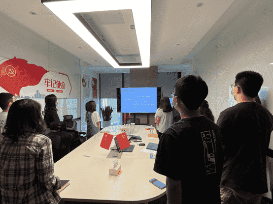 而后,,全体党员一起重新学习了解了目前的入党流程要求,,,,各支部也将在后续工作中进一步发挥支部职能,,,,做好发展党员工作。。最后,,,,全体党员面向党旗,,,重温入党誓词。。。。